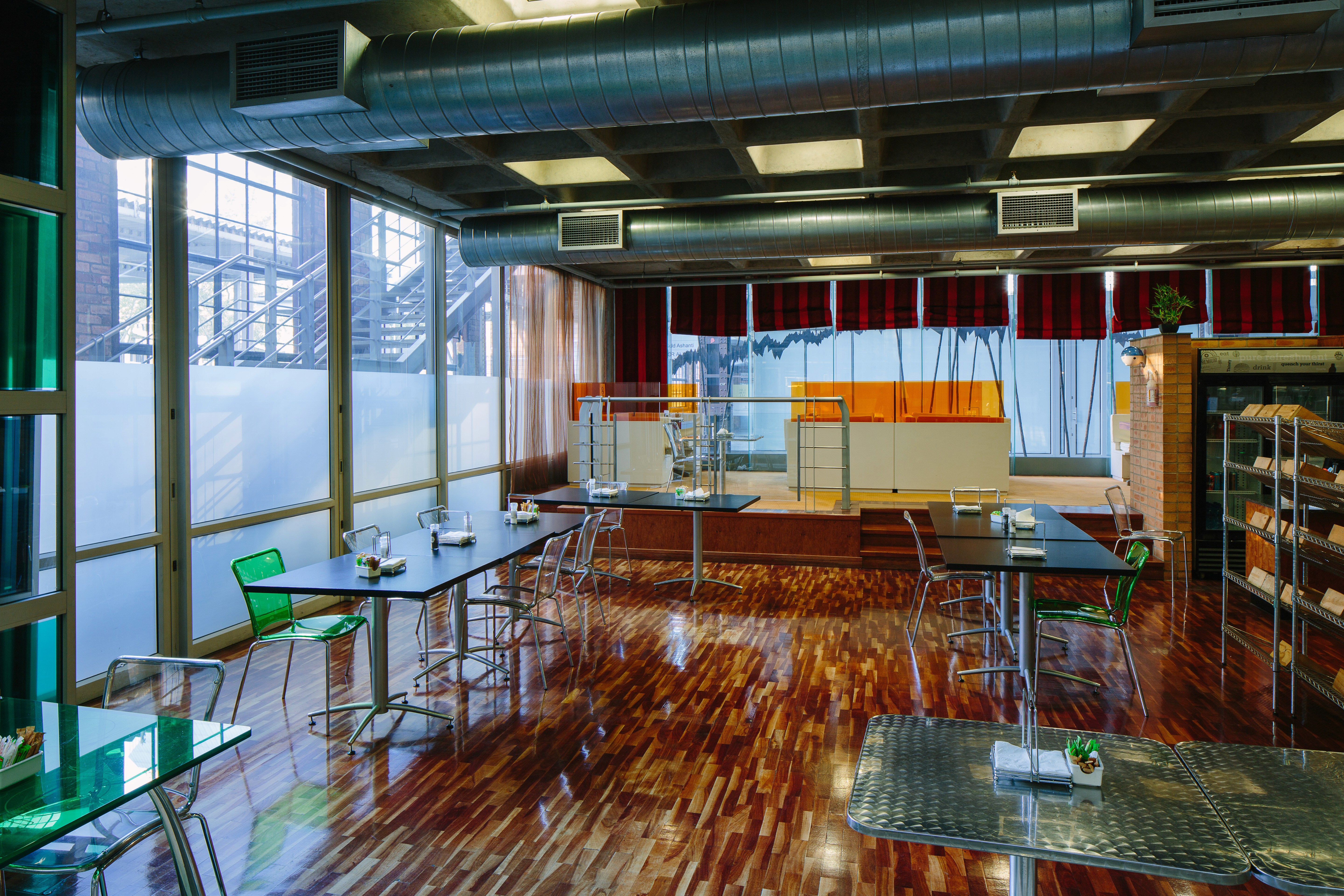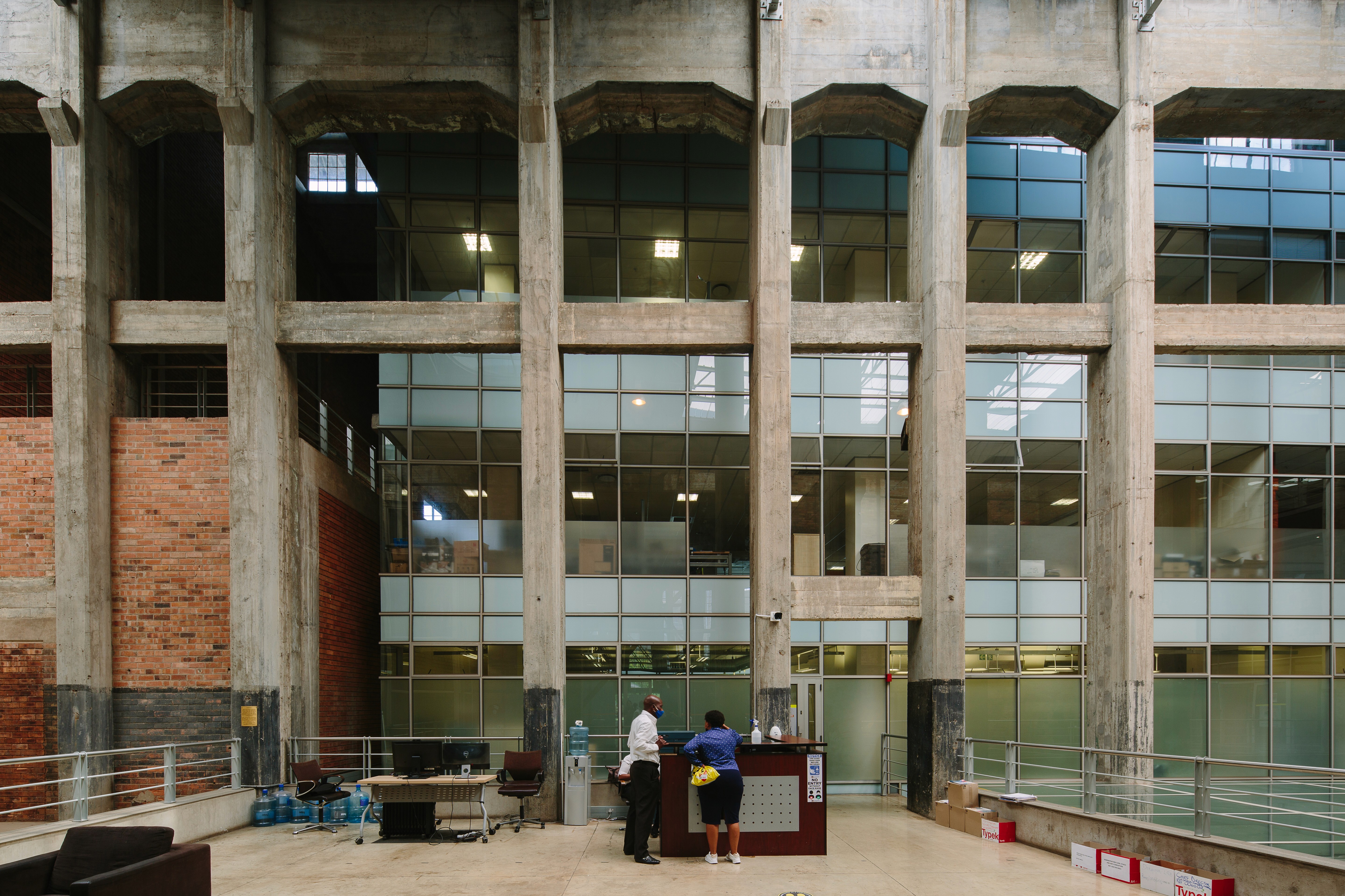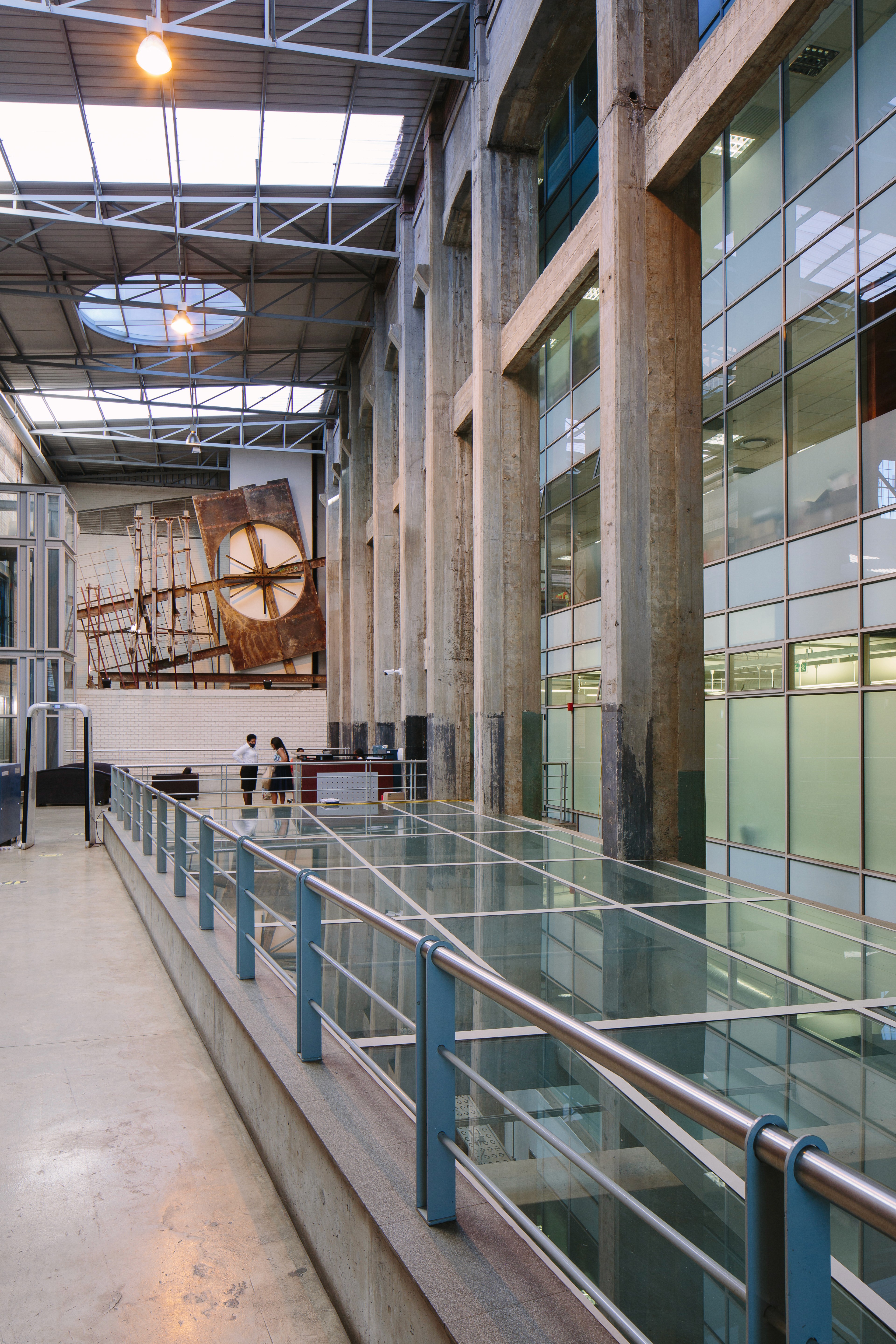 Hall and the South Boiler house to create a set of layered public and private spaces.The existing steel structure to the south boiler house was left in its rusted state to preserve the contrasting original character to the new office space.
