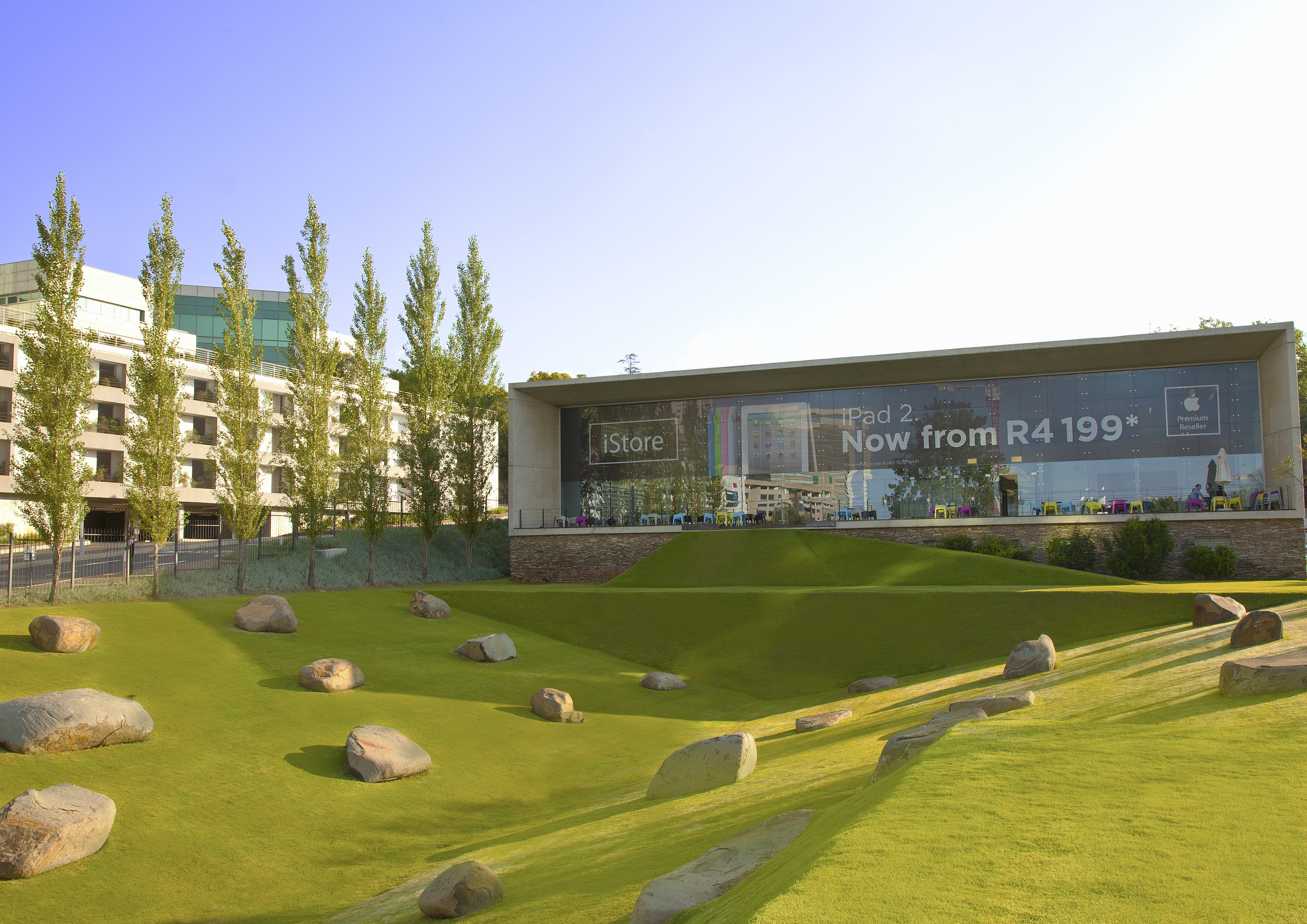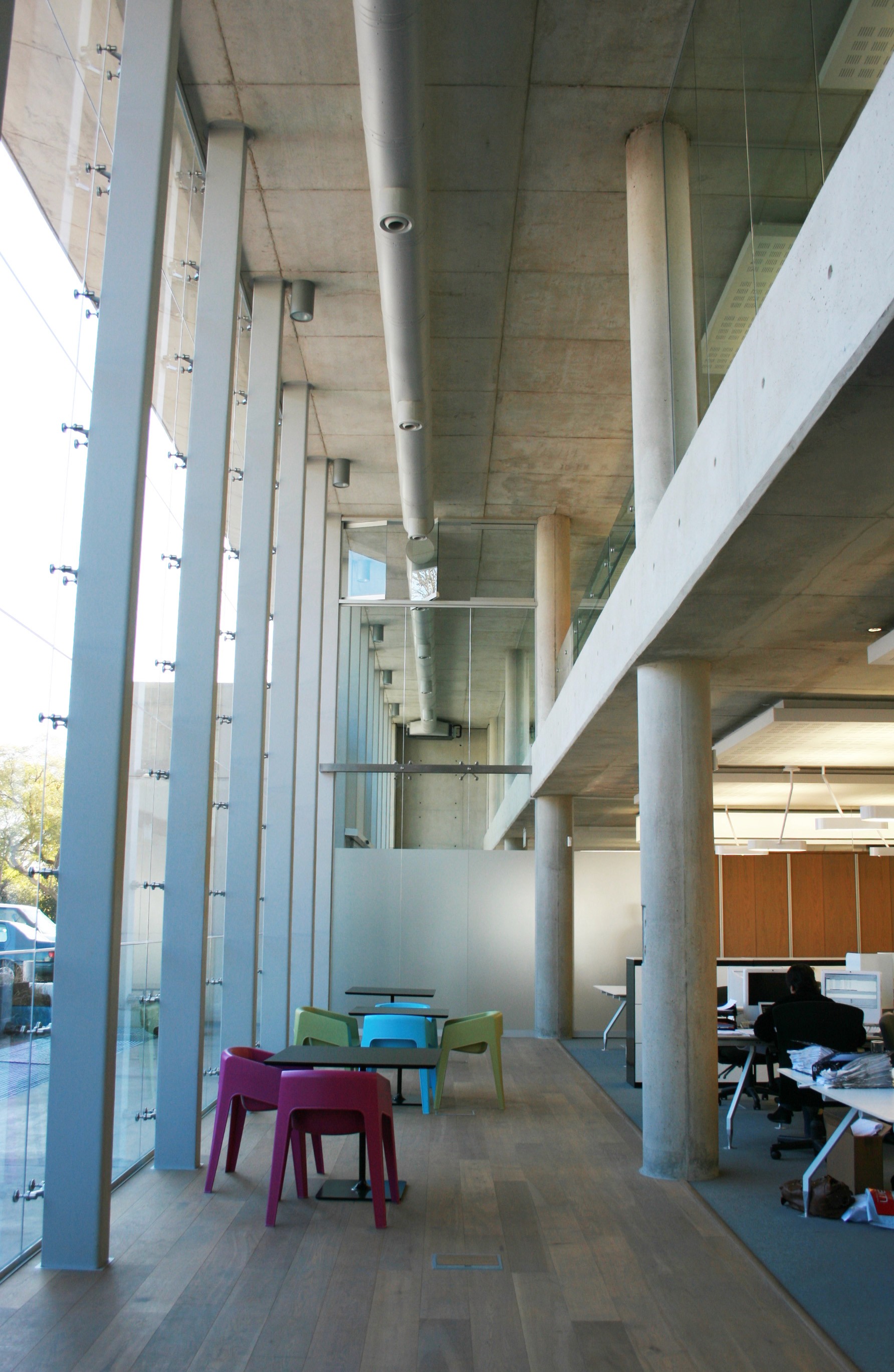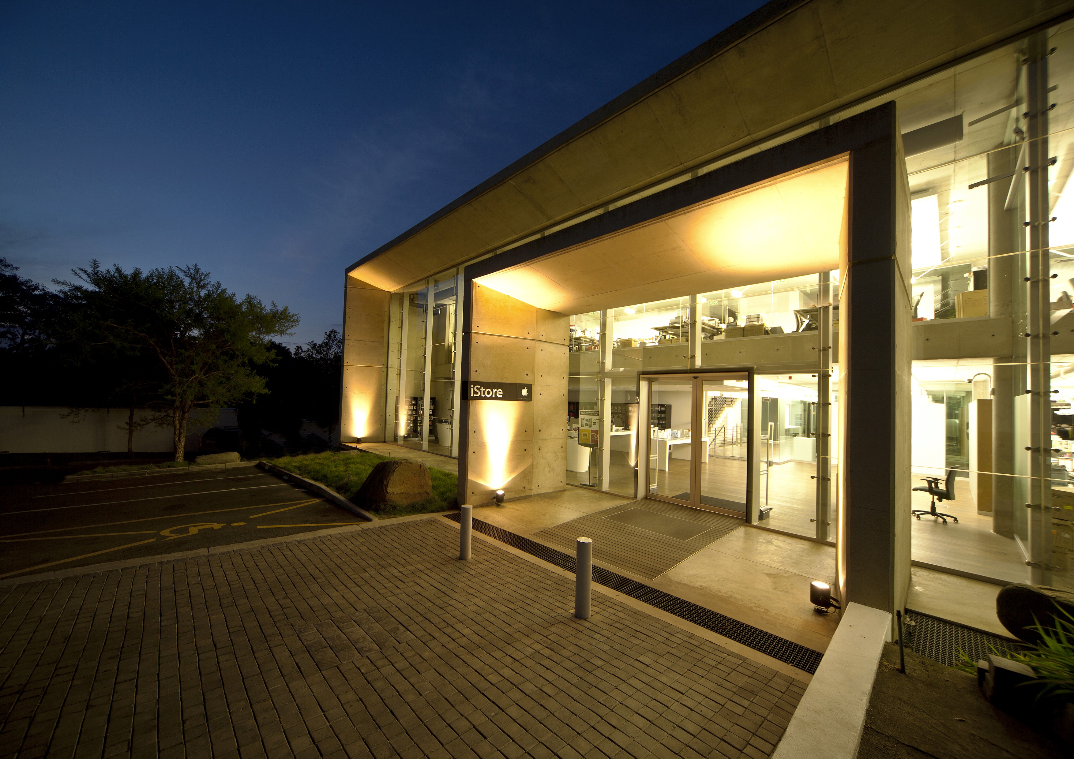 The building was conceived as an off-shutter concrete box. Care was taken to detail every shutter panel and ferrule hole. The building is an integration of Apple shop, offices, parking, and a service workshop. The building has proved to be incredibly successful, and has become the symbol of Apple quality in the commercial heart of the city. Simplicity of detail and material provides clarity and legibility of elements. Displacement ventilation was utilized to minimize service visibility internally. Service core was positioned on the side to ensure the floor space was free for future flexible use.
