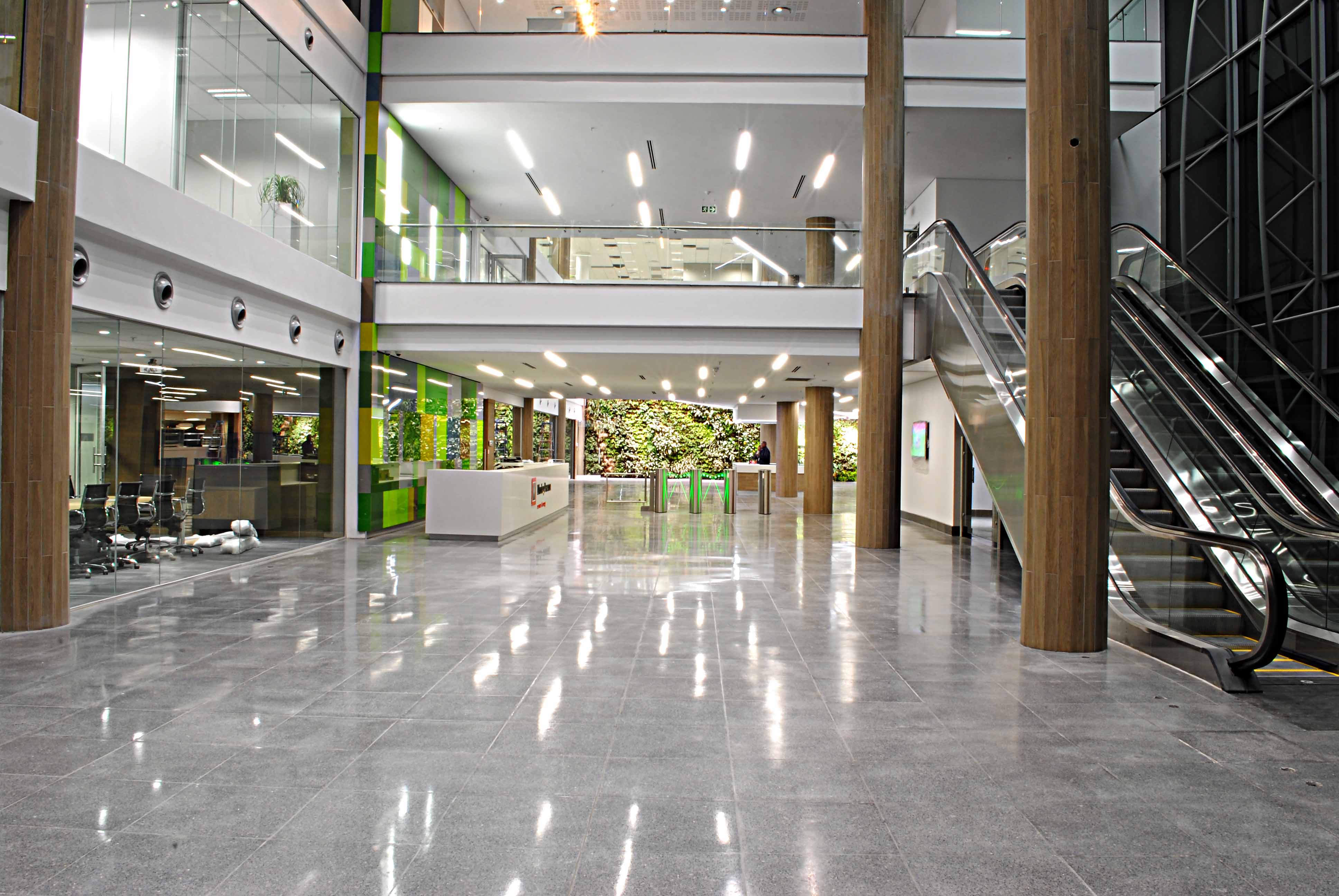 The building has access floor throughout, and is designed for flexibility and staff happiness. An extensive conference facility was designed on the ground floor with the ability to reconfigure rooms as necessary.